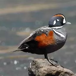 红胸秋沙鸭属中等食鱼鸭类,体长53厘米。嘴细长而带钩,捕食鱼类。丝质冠羽长而尖。雄鸟黑白色,两侧多…