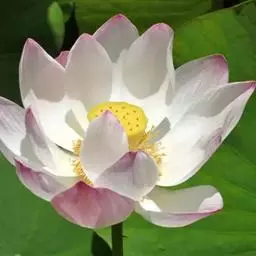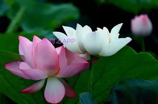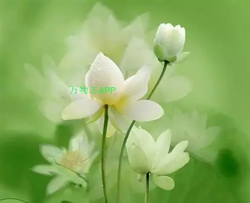 白色莲花 花色丰富,主要有红色、粉红色、白色、绿色、黄色等,花型主要有单瓣,多瓣,重瓣和千瓣。叶片呈深绿色或黄绿色,全缘盾状,表面有蜡质附着,因此水很难吸附其上而呈水珠状。莲的叶片有三种类型,有初生浮于水面的钱叶,有着生在藕带的节间处、浮于水面且叶面积略大的浮叶,有着生与藕带节间处、挺出水面的立叶。莲的叶柄从淤泥中地下茎节间处抽出,表面多有倒刺;莲的根为须状根,围绕着地下茎节间生长。莲的地下茎及叶柄内均有通气的孔道。莲地下茎顶端的顶芽,又称为藕苫,其抽生出新的地下茎节间,被称为藕带。