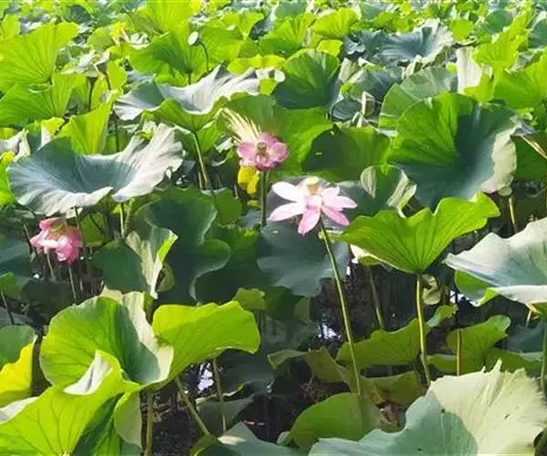 莲喜空气流动的环境。在微风下婆娑多姿;遇6级以上大风,莲叶彼此碰撞易破损,重瓣、重台、千瓣等大花品种的花柄易折断和倒伏,碗莲则更娇,花易伤,蕾易败。
