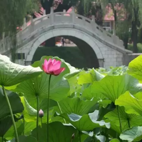 初盛时期:人们赏莲主要以湿地湖沼自生者为主,虽有人工砌池栽培,但仍以大株型、单瓣类的野生红莲为主,莲花的育种还未启动。莲作为观赏植物引种到园池栽植,最早是在公元前473年,吴王夫差在他的离宫(即现在的苏州灵岩山)为宠妃西施赏莲而修筑的“玩花池”。但从吴越以后的千年里,莲花仍多居旷野大湖。