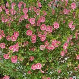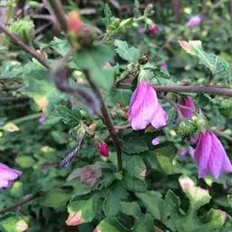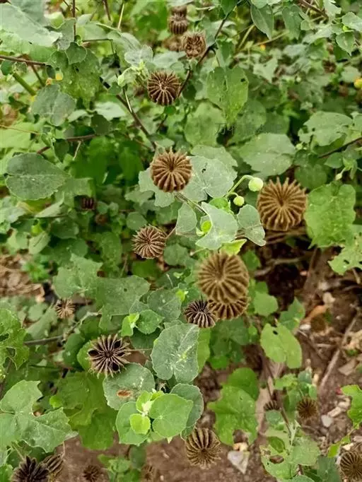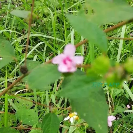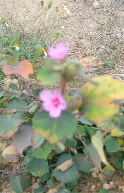 1、地桃花:又名肖梵天花。直立亚灌木状草本,高达1m。小枝被星状绒毛。叶互生;叶柄长1-4cm,被灰白色星状毛;托叶线形,长约2mm,早落;茎下部的叶近圆形,长4-5cm,宽5-6cm,先端浅3裂,基部圆形或近心形,边缘具锯齿;中部的叶卵形,长5-7cm,宽3-6.5cm;上部的叶长圆形至披针形,长4-7cm,宽1.5-3cm;叶上面被柔毛,下面被灰白色星状绒毛。花腋生,单生或稍丛生,淡红色,直径约15mm;花梗长约3mm,被绵毛;小苞片5,长约6mm,基部合生;花萼杯状,裂片5,较小苞片略短,两者均被星状柔毛;花瓣5,倒卵形,长约15mm,外面被星状柔毛;雄蕊柱长约15mm,无毛;花柱枝10,微被长硬毛。果扁球形,直径约1cm,分果爿被星状短柔毛和锚状刺。花期7-10月。