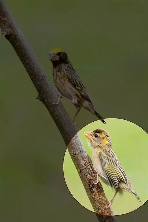 雌鸟及亚成体顶纹沙色,两侧冠纹略深;眉纹皮黄色较明显;背部颜色和纵文教雄鸟的略浅;肩上的白斑和翅斑较雄鸟的灰暗,下体黄色较黯淡。