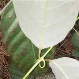 蔓九节是茜草科九节属的攀援或匍匐藤本植物。常以气根攀附树干或岩石;幼枝无毛或有粃糠状柔毛;幼树叶卵形或倒卵形,托叶膜质;圆锥状或伞房状聚伞花序顶生,苞片和小苞片线状披针形,花萼倒圆锥形,花冠白色,冠筒与裂片近等长,裂片长圆形;浆果状核果球形或椭圆形;花期4-6月;果期全年。因叶片紧贴着树干往上生长,宛如一条青龙上树,故又名“上树龙”。蔓九节分布在中国浙江、福建、台湾等省地,在日本、朝鲜、越南等国也有分布,生长在海拔70-1360米的平地、丘陵、山地、山谷水旁的灌丛或林中。喜温暖湿润,不耐寒,耐荫,适宜选用排水良好、富含有机质的砂质土壤。蔓九节在《世界自然保护联盟濒危物种红色名录》中属于无危。繁殖方法一般为扦插、压条、播种繁殖。据《福建药物志》中记载蔓九节“有祛风除湿,舒筋活络的功效。主治风湿关节痛,头风痛,手足麻木坐骨神经痛,腰肌劳损,