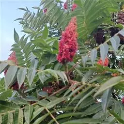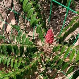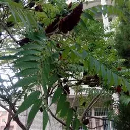 火炬树是漆树科盐麸木属落叶灌木或小乔木;株高,树形不整齐;小枝粗壮,红褐色,密生绒毛;叶轴无翅,…