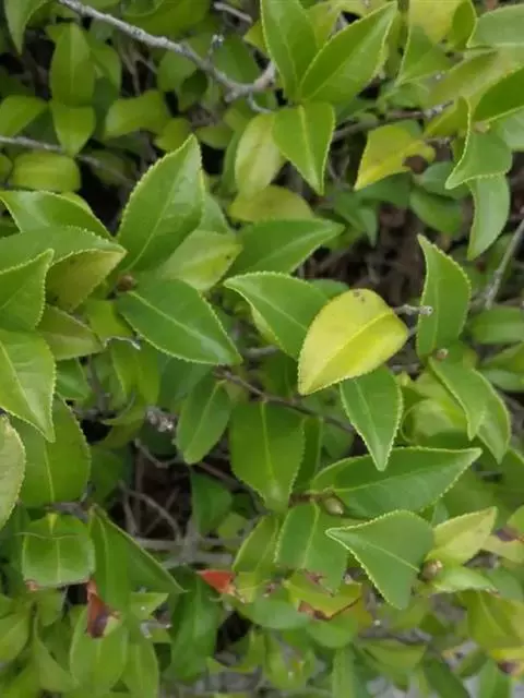 滇山茶:灌木至小乔木,有时高达15米,嫩枝无毛。叶阔椭圆形,上面干后深绿色,发亮,下面深褐色,无毛,…