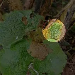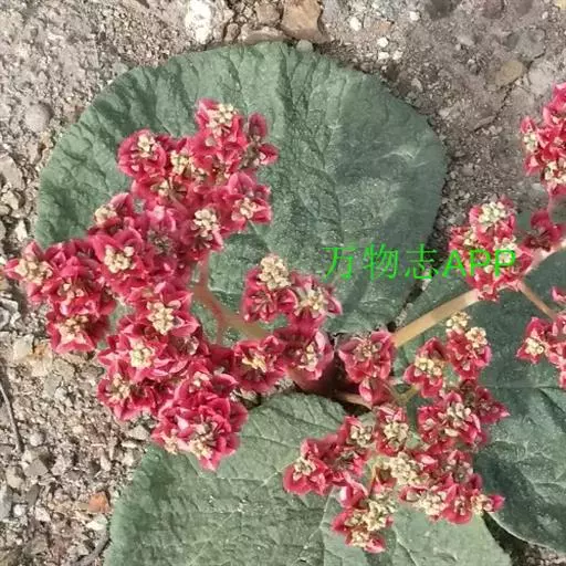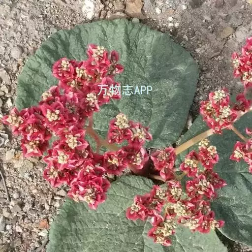 基生叶2--4片,叶片革质,肾状圆形或近圆形,长6 14厘米,宽8-16厘米,稀更大,顶端阔圆,基部圆形或极浅心形,近全缘呀略不整齐,叶脉掌状,基出脉3-5条,叶上面黄绿色,具白色优状突起,下面色较浅,无毛;叶柄短粗,长2-4.5厘米,直径7-9毫米,具细沟棱,光滑无毛。