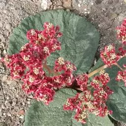 矮大黄(拉丁学名:Rheum nanum Siev. ex Pall..)是蓼科,大黄属多年生矮小粗壮草本,高可达35厘米;根为直或弯曲的长圆柱状,根状茎顶部被多层棕色膜质托叶鞘包围,托叶鞘光滑无毛。叶片革质,肾状圆形或近圆形,顶端阔圆,基部圆形或极浅心形,叶脉掌状,叶上面黄绿色,下面色较浅,叶柄短粗,花序由根状茎顶端生出,花成簇密生,苞片鳞片状;花梗较粗壮,花被片近肉质,黄白色,常具紫红色煊染,花盘环状,略肥厚呈肉质;果实肾状圆形,红色,纵脉靠近翅的边缘。种子卵形,5-6月开花,7-9月结果。
