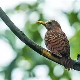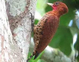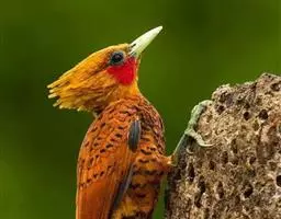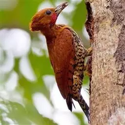 栗啄木鸟:是一种红褐色啄木鸟,体长21厘米。雄性成鸟整个头棕色,…