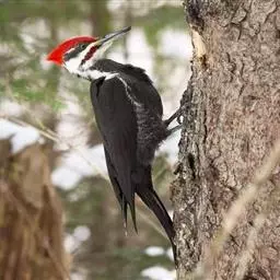 北美黑啄木鸟,Dryocopus pileatus (Linnaeus, 1758),啄木鸟科黑啄木鸟属的一种鸟类。身长约42厘米,体羽黑色,颈部有白色条纹,羽冠鲜红色,时常竖起。分布于北美地区,包括美国、加拿大、格陵兰、百慕大群岛、圣皮埃尔和密克隆群岛及墨西哥境内北美与中美洲之间的过渡地带。