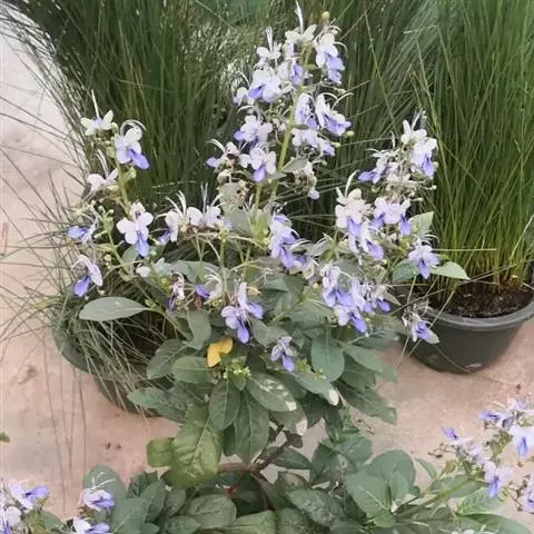 新叶紫色,10月中旬变为紫红色。6月中旬至9月开花,花葶高40-50厘米,整个花序有180-280朵小花,花序直径约为6厘米,小花 冠唇形开裂大,下唇边缘波状,柔粉色,有白色窄边,整个花序呈丰满的半球形;