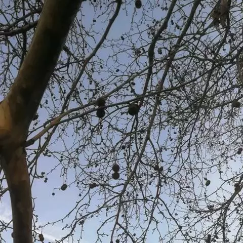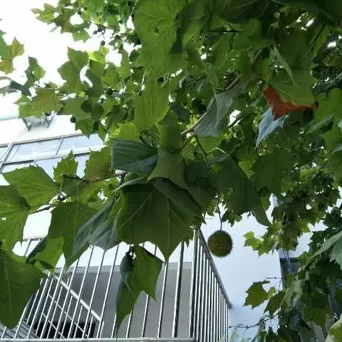 而悬铃木则树干粗大(也不是很粗,比梧桐粗),叶片亦呈三角星状,只是大得多。果实非常小,不能吃。叶子在秋天变成褐黄色,肯定没有梧桐的叶子好看。树冠很大,且因叶子很大,几乎完全遮住了树冠上面的阳光,所以最是适合做人行道遮荫树。