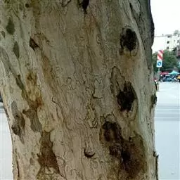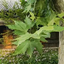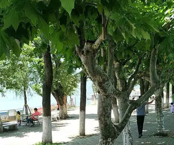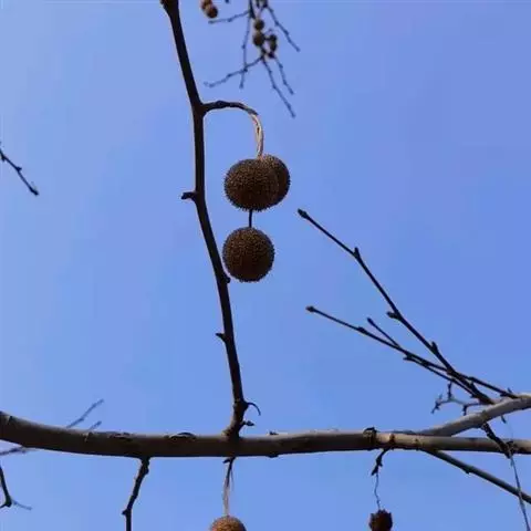 二球悬铃木的亲本三球悬铃木,又叫裂叶悬铃木、鸠摩罗什树。公元401年,印度高僧鸠摩罗什到中国传播佛教,携带这种树,种植于西安附近的户县古庙前,尚存树干得有4人才能合抱。这是我国最早引种的悬铃木了。可惜,这种三球悬铃木在西安也没推广,西安的行道树是从上海引种的二球悬铃木。