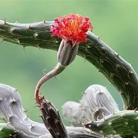 绿玉菊为菊科千里光属多年生肉质植物。植株匍匐或悬垂、向上攀援生长,茎圆柱形,红褐色,叶互生,具叶柄,…