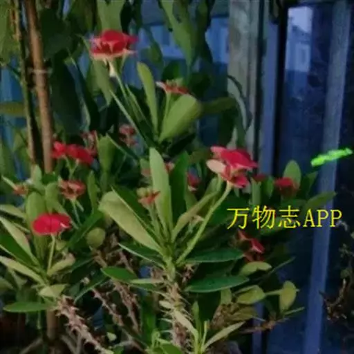 虎刺梅(学名:Euphorbia milii Ch. des Moulins):别称铁海棠,是蔓生灌木植物。茎多分枝,长60-100厘米,直径5-10毫米,具纵棱,密生硬而尖的锥状刺,刺长1-1.5厘米,直径0.5-1.0 毫米,常呈3-5列排列于棱脊上,呈旋转。叶互生,通常集中于嫩枝上,倒卵形或长圆状匙形,全缘。花序2或8个组成二歧状复花序,生于枝上部叶腋;柄基部具1枚膜质苞片,苞叶2枚,肾圆形,总苞钟状,边缘5裂,黄红色。雄花数枚,雌花1枚,常包于总苞内。蒴果三棱状卵形,种子卵柱状,直径约2毫米,灰褐色。花果期全年。