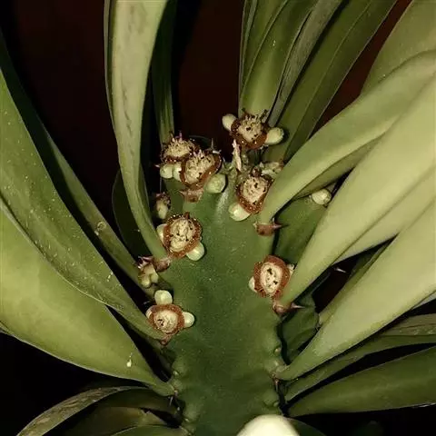 常绿大戟以丛生灌木的形式生长,具有很多茎,在杯状聚伞花序上具有典型的黑色或是深棕色蜜腺。…