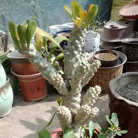 苏铁大戟:俗称“铁甲丸”。多年生的多肉植物,茎干深褐色,样似苏铁的茎干,茎干初期为绿色球型,…