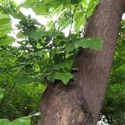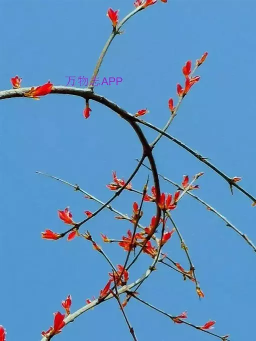 刺桐是落叶大乔木,高可达20米。树皮灰褐色,枝有明显叶痕及短圆锥形的黑 刺桐 色直刺,髓部疏松,颓废部分成空腔。羽状复叶具3小叶,常密集枝端;托叶披针形,早落;叶柄长10-15厘米,通常无刺;小叶膜质,宽卵形或菱状卵形,长宽15-30厘米,先端渐尖而钝,基部宽楔形或截形;基脉3条,侧脉5对;小叶柄基部有一对腺体状的托叶。