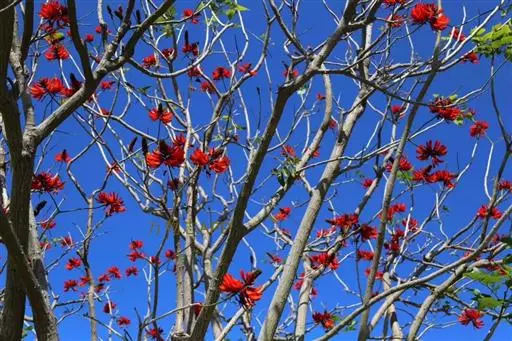 树叶、树皮和树根可入药,有解热和利尿的功效。 刺桐(图5)