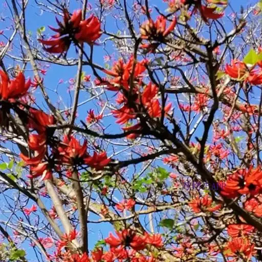 在中国某些地方的旧俗里,人们曾以刺桐开花的的情况来预测年成:如头年花期偏晚,且花势繁盛,那么就认为来年一定会五谷丰登,六畜兴旺,否则相反;还有一种说法是刺桐每年先萌芽后开花,则其年丰,否则反之。所以刺桐又名“瑞桐”。代表着吉祥如意。因为这一点,在宋代还引出一场小小的争论呢!争论的一方是作为廉访使到泉州的丁渭,他很希望能先看到刺桐的青叶,使泉州年谷丰熟,于是曾写下这么一首诗:“闻得乡人说刺桐,叶先花发卜年丰。我今到此忧民切,只爱青青不爱红。”争论的另一方是到泉州来当郡守的王十朋,他与丁渭抱有相同的愿望,但他不相信先后花或先花后芽那一套谶语。为此也写下了一首诗:“初见枝头万绿浓,忽惊火伞欲烧空。花先花后年俱熟,莫道时人不爱红。”虽有争论,但流传人间的却是一段佳话。真是可爱的公仆可爱的花。 刺桐(图9)