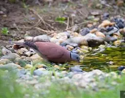 欧斑鸠体长27厘米,是一种体型略小的粉褐色斑鸠。颈侧具多黑白色细纹的斑块,翼覆羽深褐,…