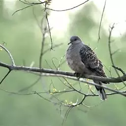 山斑鸠,是鸽形目鸽鸠科斑鸠属鸟类,又名金背斑鸠、棕背斑鸠、山鸠、金背鸠、麒麟斑、麒麟鸠、东方斑鸠、绿斑鸠、山鸽子。山斑鸠颈侧具明显黑白色条纹的块状斑,上体深褐色、具扇贝状斑纹,羽缘棕色,尾羽近黑色,下体多偏粉色。虹膜黄色,喙灰色,脚粉色。山斑鸠是留鸟,在中国常见且分布广泛。此外,还分布于不丹、尼泊尔、巴基斯坦、印度、日本等国。栖息于针阔混交林、季风常绿阔叶林、果园及农耕区,多成对活动于开阔农耕区、村舍、寺院周围及防火林带。取食于地面,主要觅食植物种子、果实、嫩芽等,也吃昆虫。山斑鸠飞翔时鼓翼快速,叫声为反复而低沉的“咕咕咕”声。繁殖期在4-7月,营巢于林中树上,通常一年繁殖2窝,窝卵数2枚,由雌雄亲鸟轮流孵卵,孵化期18~19天。山斑鸠的肉、卵可食,肉入药可益气明目、强筋壮骨,治久病气虚、衰弱无力、两目昏暗等病症。山斑鸠啄食杂草种子,对农田清除杂草有益;但有时也刨食农作物及树的种子。山斑鸠