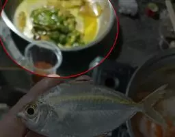 8、锅中留少许油,下蒜米和辣酱煸炒出香味