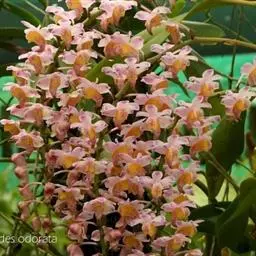 束花石斛是兰科石斛属植物。茎粗厚,肉质,下垂或弯垂,圆柱形,不分枝,具多节。叶二列,互生于整个茎上,…