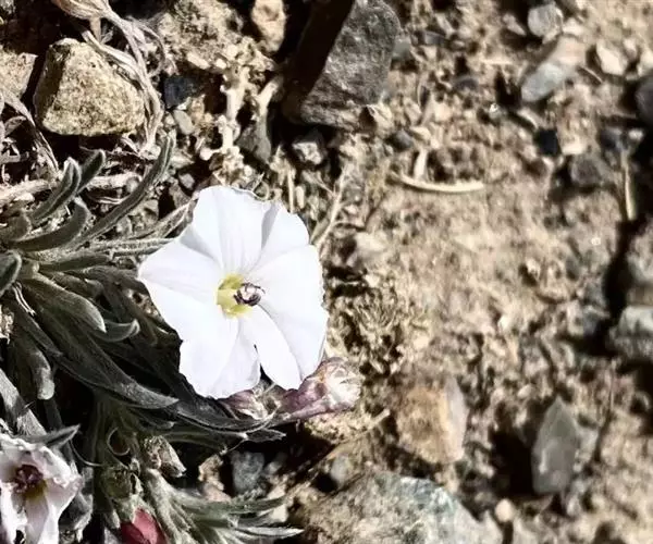 多年生草本,根状茎短,木质化,茎少数或多数,高2~10(~15)厘米,平卧或上升,枝和叶密被贴生稀半贴生银灰色绢毛。叶互生,线形或狭披针形,长1~2厘米,宽(0.5~)1~4(5)毫米,先端锐尖,基部狭,无柄。花单生枝端,具细花梗,长0.5~7厘米;萼片5,长(3-5~)4~7毫米,外萼片长圆形或长圆状椭圆形,近锐尖或稍渐尖,内萼片较宽,椭圆形,渐尖,密被贴生银色毛;花冠小,漏斗状,长(8)~9~15毫米,淡玫瑰色或白色带紫色条纹,有毛,5浅裂;雄蕊5,较花冠短一半,基部稍扩大;雌蕊无毛,较雄蕊稍长,子房2室,每室2胚珠;花柱2裂,柱头2,线形。蒴果球形,2裂,长约4~5毫米。种子2~3枚,卵圆形,光滑,具喙,淡褐红色。