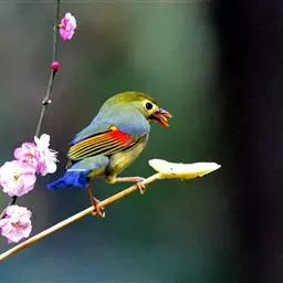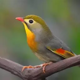 银耳相思鸟小型鸟类,体长14~18厘米。头顶黑色,耳羽银灰色,前额橙黄色;外侧飞羽橙黄色,基部朱红色,…