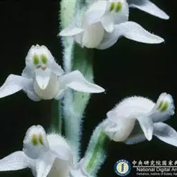 侧裂片半卵形,近全缘;中裂卵形,长1—1.3厘米,宽6—7毫米;唇盘上有3条纵脊,延伸至中裂片基部,中央1条多少呈褶片状或不规则褶片状;蕊柱向前弯曲,长约2厘米,两侧具狭翅。