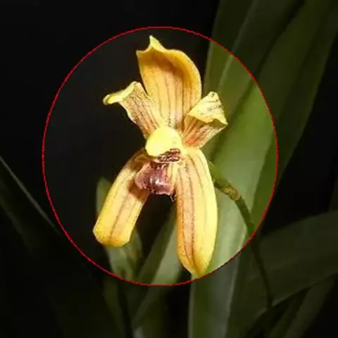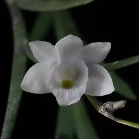 花色泽不详,直径达4厘米;萼片近长圆形,长2.5—2.8厘米,宽7—9毫米,先端渐尖或近短尾状,具5脉;花瓣线形,长2.2—2.4厘米,宽2.5—3毫米;唇瓣卵形,长2.5—2.8厘米,3裂,基部凹陷 ;