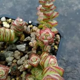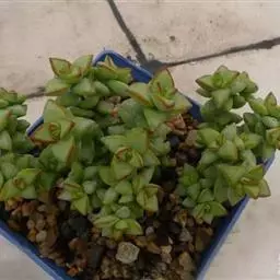 小天狗(Crassula herrei H.-C.Friedrich) 是景天科青锁龙属多肉植物,为小型品种,小天狗植株丛生,有细小的分枝,茎肉质,时间养久了茎会逐渐半木质化,小天狗叶片半橄榄型,叶片颜色绿,叶片上密布小斑点,叶缘至叶片的顶端微褐红色,在晚秋和早春,温差大的时候红褐色尤为明显。