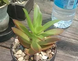叶子表面宽厚,富肉质感且带有磨纱质感,看像石头质地;开红色小花,生于植株顶部,倒伞形密生,形状像花…