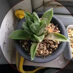 小天狗叶片半橄榄型,叶片颜色绿,叶片上密布小斑点,叶缘至叶片的顶端微褐红色,在晚秋和早春,温差大的时候红褐色尤为明显。开花为白色,每年的9月至第二年的6月为植株的生长期(环境不一样,生长期也有长短),若光照不足会使植株徒长,叶与叶之间的上下距离拉长,使得株型松散,茎变的很脆弱,叶缘的红褐色也会减退变绿;而在阳光充足之处生长的植株,株型矮壮,茎节之间排列会紧凑。