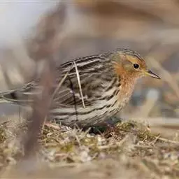 粉红胸鹨:属小型鸣禽,体重18-27克,体长13-18厘米。非繁殖期粉皮黄色的粗眉线明显,背灰而具…