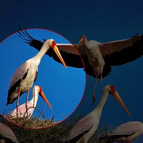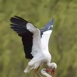 白鹳,也叫 “老鹳”。它体形硕大,长约1.2米,通身羽毛为白色,唯两翅边缘羽毛为黑色。白鹳嘴、腿都很长,亚州白鹳腿为暗红色,而嘴为黑色,分东、西亚种,生活习性与黑鹳基本相似。夏季,我国白鹳的繁殖地有两处:东亚种繁殖地在东北北部山林地区,西亚种繁殖地在新疆西部。深秋或初冬,东北的白鹳南飞长江中、下游或福建、广东和台湾等温暖地区越冬,新疆的白鹳则迁徙到印度、尼泊尔等国的温暖地区越冬。