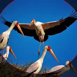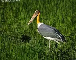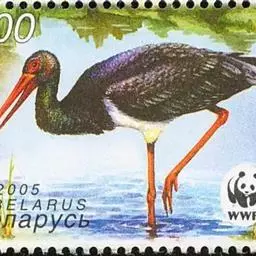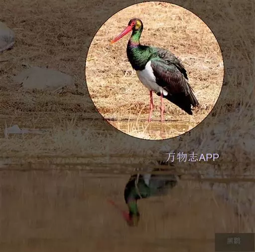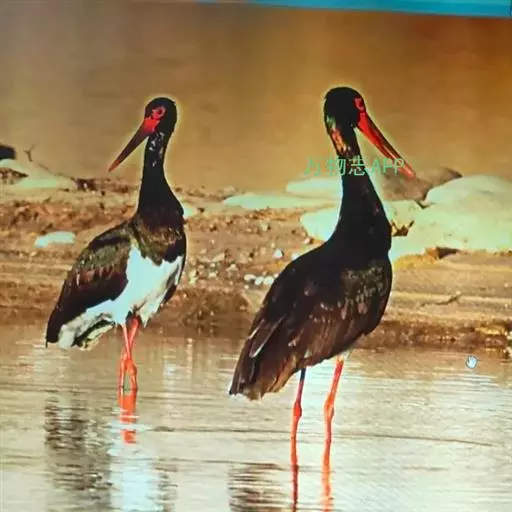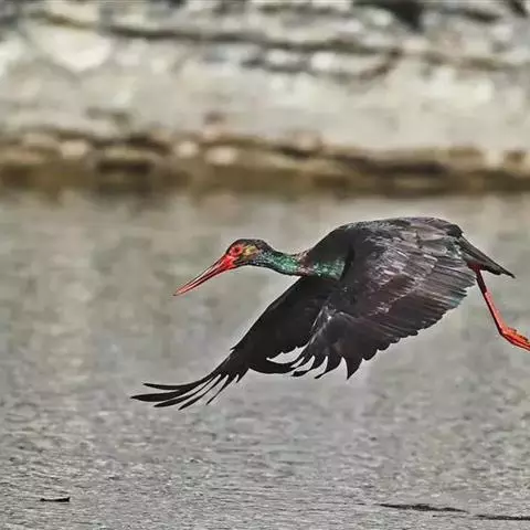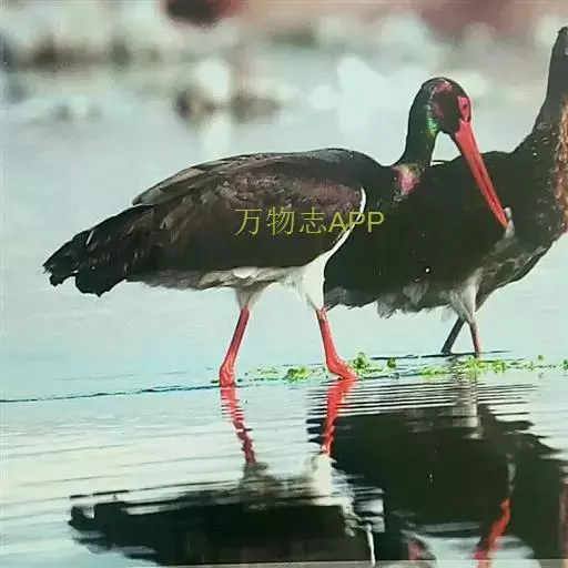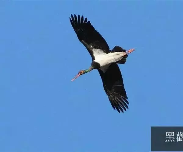 黑鹳(学名:Ciconia nigra):是一种体态优美,体色鲜明,活动敏捷,性情机警的大型涉禽。成鸟的体长为1-1.2米,体重2-3千克;嘴长而粗壮,头、颈、脚均甚长,嘴和脚红色。身上的羽毛除胸腹部为纯白色外,其余都是黑色,在不同角度的光线下,可以映出变幻多种颜色。在高树或岩石上筑大型的巢,飞时头颈伸直。