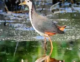 幼鸟头、颈和上胸褐色,颈和上胸具棕褐色斑点,上体包括两翅和尾黑褐色,具绿色和紫色光泽,翅覆羽、肩羽、次级飞羽、三级飞羽和尾羽具淡皮黄褐色斑点,下胸、腹、两胁和尾下覆羽白色,胸和腹部中央微沾棕色,嘴、脚褐灰色或橙红色。
