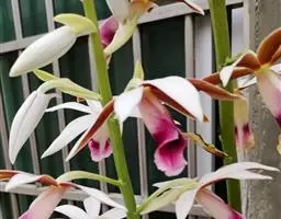 坛花兰:假鳞茎卵状圆柱形,长达15厘米,基部粗1.5-4厘米,具2-4个节,…