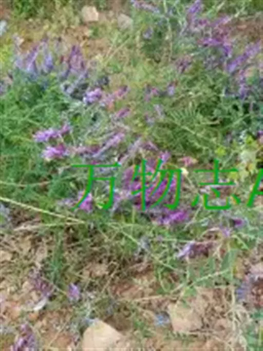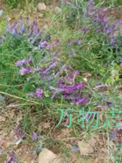 长柔毛野豌豆 一年生草本,攀援或蔓生,植株被长柔毛,长30-150厘米,茎柔软,有棱,多分枝。偶数羽状复叶,叶轴顶端卷须有2-3分支;托叶披针形或二深裂,呈半边箭头形;小叶通常5-10对,长圆形、披针形至线形,长1-3厘米,宽0.3-0.7厘米,先端渐尖,具短尖头,基部楔形,叶脉不甚明显。