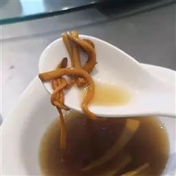 白红相间,形如菊花,肉质软嫩而鲜;粉条又酥又香,别有风味。