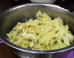 2.把白菜丝放入盘内,再依次放上豆腐干丝、肉丝、香菜,浇上用各种调料对好的汁即成。