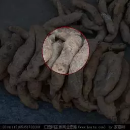 ⑥黑根病:病根水洗后可见网状菌索,其前端白色,中段红色,后段黑色;