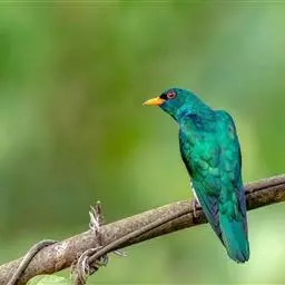 翠金鹃体长约17厘米,雄鸟上体辉绿色,头至背缀有很多棕栗色,…