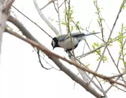 沼泽山雀(学名:Poecile palustris):体重10-14克,体长113-138毫米。是一种体形比大山雀稍小的鸟类。前额、头顶至后颈辉黑色,眼以下脸颊至颈侧白色,上体沙灰褐色。颏、喉黑色,其余下体白色或苍白色。相似种煤山雀上体较灰,翅上有两道白色翅带,脸部白部不与下体联通。
