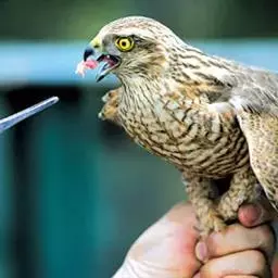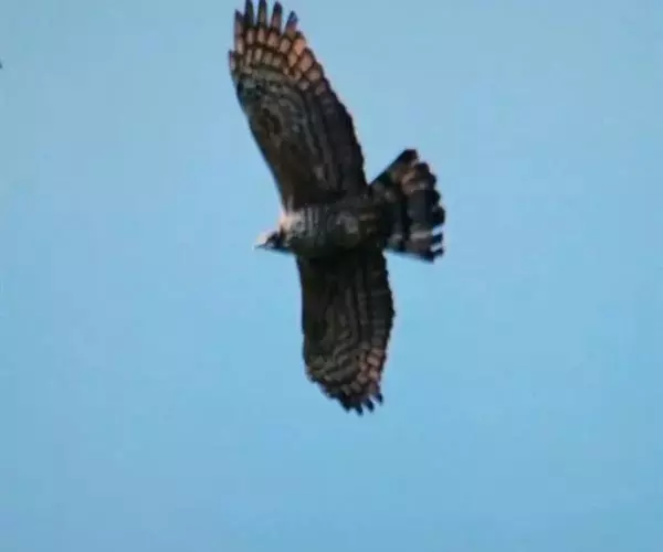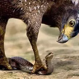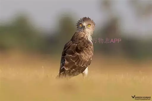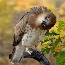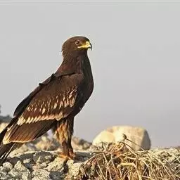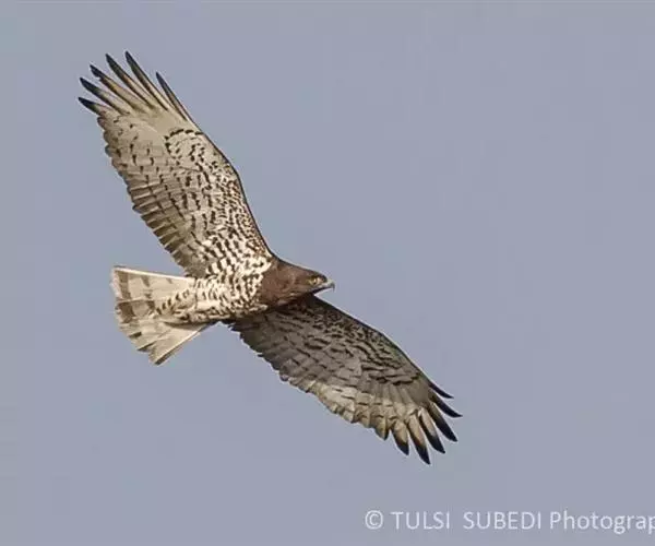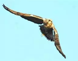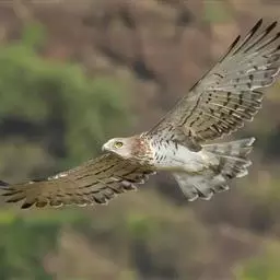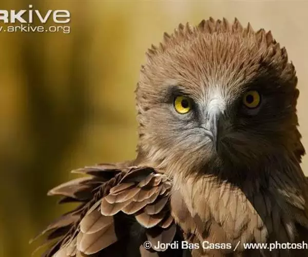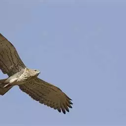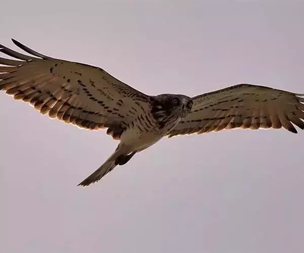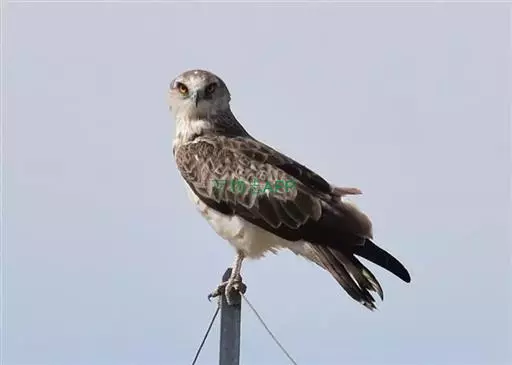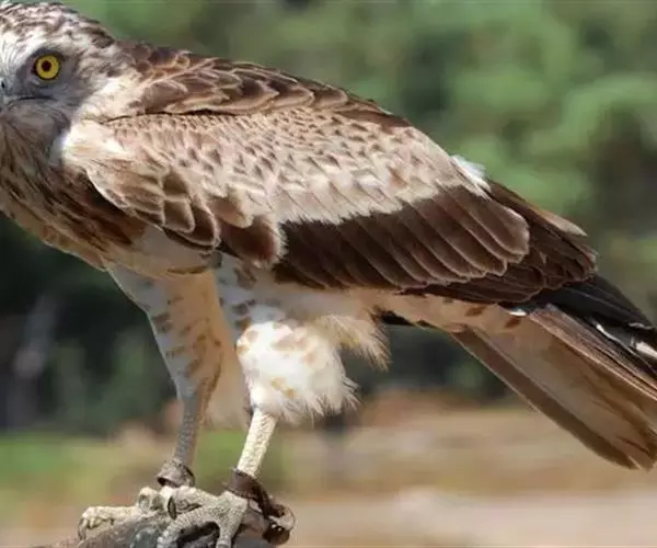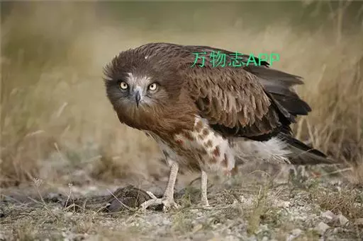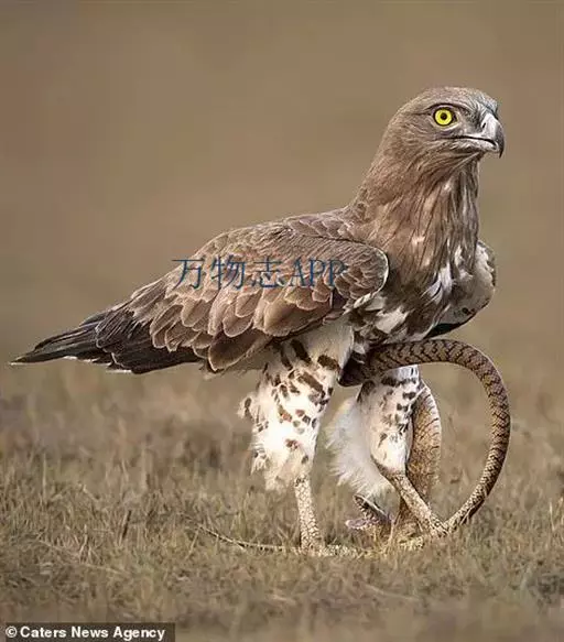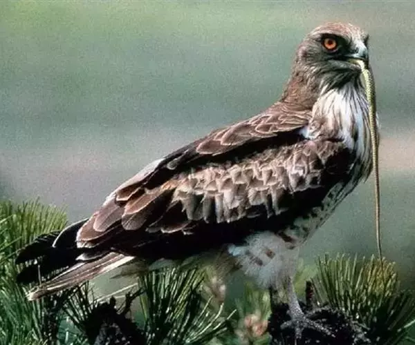 短趾雕(学名:Circaetus gallicus):体长62-70厘米,体重1.2 - 2.3千克。它们的颔、颈和胸部上方呈浅棕色。头部浑圆像猫头鹰般,眼睛呈鲜黄色。身体沉重,上体灰褐,下体白而具深色纵纹,喉及胸单一褐色,腹部具不明显的横斑,尾具不明显的宽阔横斑。虹膜黄色;嘴黑色;蜡膜灰色;脚偏绿。