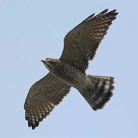 松雀鹰又名雀鹰、松子鹰,是鹰形目鹰科鹰属小型猛禽。雄鸟头顶至后颈黑灰色,眼先白色,…