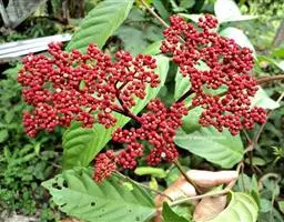 乌头叶蛇葡萄(Ampelopsis aconitifolia)也叫草葡萄、草白敛、狗葡萄、过山龙,为葡萄科、蛇葡萄属落叶木质藤本。 枝细而光滑,借卷须攀附上升。掌状复叶,小叶3-5,披针形至菱状披针形,长4-9cm,羽状全裂,聚伞花序与叶对生,花小,黄绿色;浆果近球形,橙黄色至红色。