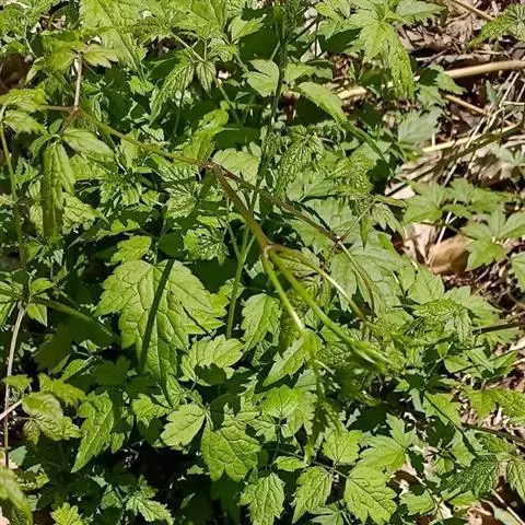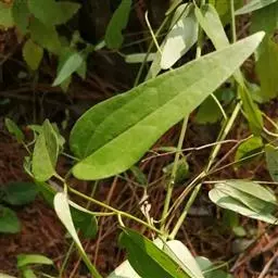 草质藤本,长约1~2米。茎棕色或紫红色,具六条纵纹,节部膨大,被稀疏短柔毛。二回三出复叶,连叶柄长达12厘米;小叶片狭卵形至披针形,长2~6厘米,宽1~2厘米,顶端钝尖,基部圆形或阔楔形,边缘全缘,极稀有分裂,两面均不被毛,脉纹不显;小叶柄清晰能见,短或长达1厘米;叶柄长4厘米。
