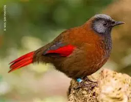 丽色噪鹛是红翅噪鹛的指名亚种。中型鸟类,体长23-28厘米。头顶灰橄榄褐色具粗著的黑色纵纹,头侧、…